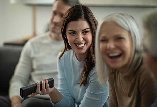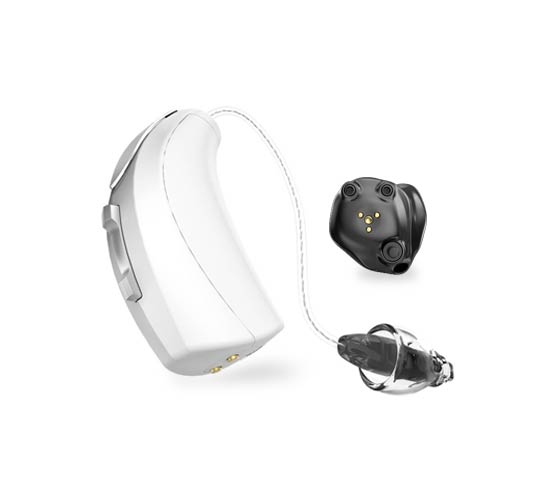 Our wireless hearing aids work with our SurfLink Media 2 streamer, the first set-and-forget wireless transmitter. With SurfLink Media 2, there’s no manual pairing involved.